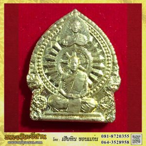 พระผงนั่งซุ้มหลวงปู่บุญจันทร์ กมโล หลังพระธาตุไตรรัตน์กมโลเจดีย์เนื้อสีเหลือง วัดป่าสันติกาวาส อุดรธานี