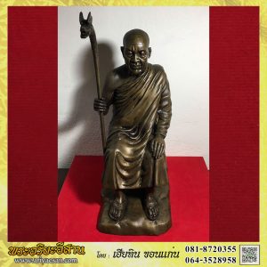 พระบูชารุ่นแรกนั่งฐานภูเขาถือไม้เท้าหัวมังกรขนาความสูง12นิ้วลป.สำลี สุทธจิต สุทธจิตโต รุ่นเศรษฐี เนื้อโลหะ วัดถ้ำคูหาวารี อ.วังสะพุง จ.เลย