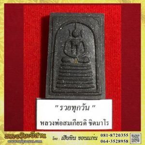 พระผงสมเด็จติดเกศาหลังรูปเหมือน หลวงพ่อสมเกียรติ ชิตมาโร รุ่นรวยทุกวัน เนื้อสีดำ วัดป่าถ้ำพระเทพนิมิต อุดรธานี