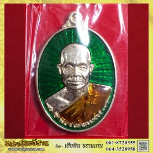 เหรียญหลวงพ่อแสน ชาคโร รุ่นแรกเงินทองแสนล้านเนื้ออัลปาก้าลงยาพื้นเขียวNo.๑๘ปี2555 วัดพระธาตุดุม อ.เมือง จ.สกลนคร