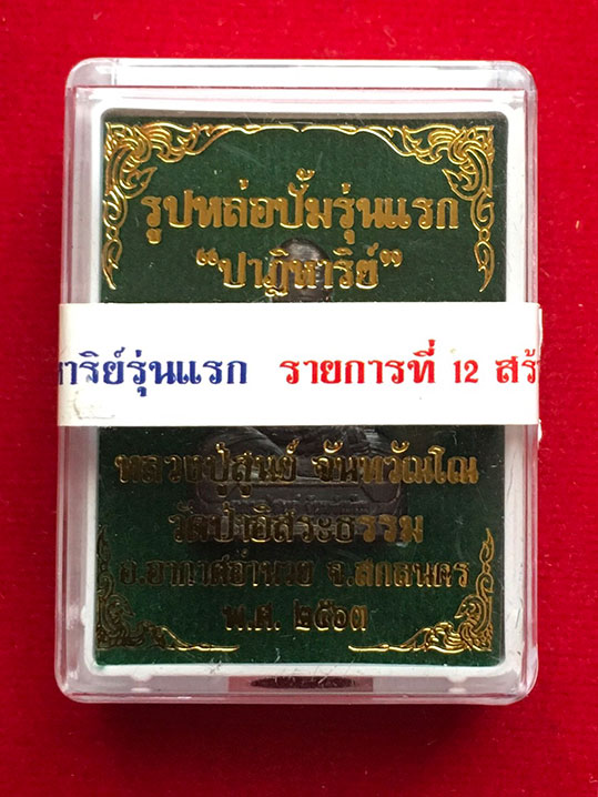 รูปหล่อปั้มปาฎิหารย์รุ่นแรกหลวงปู่สูนย์ จันทวัณโณ เนื้อทองแดงรมดำหมายเลข24ปี2563 วัดป่าอิสสระธรรม อ.อากาศอำนวย สกลนคร สวยนิยมพร้อมกล่อง