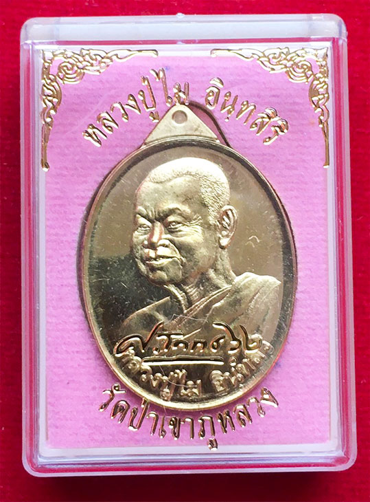 เหรียญหันข้างหลวงปู่ไม อินทสิริ ด้านหลังพระอุปคุตเนื้อทองฝาบาตรหมายเลข576ปี2562 วัดป่าเขาภูหลวง อ.วังน้ำเขียว จ.นครราชสีมา