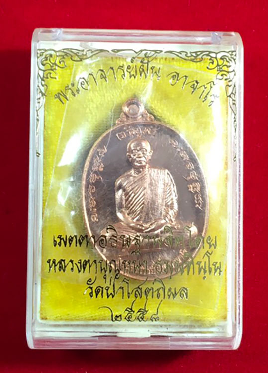 เหรียญพระอาจารย์ฝั้น อาจาโร รุ่นเจริญพร เนื้อทองแดงผิวไฟหมายเลข806ปี2558 อธิษฐานจิตโดยลต.บุญหนา ธัมมทินโน วัดป่าโสตถิผล สกลนคร สวยๆพร้อมกล่อง