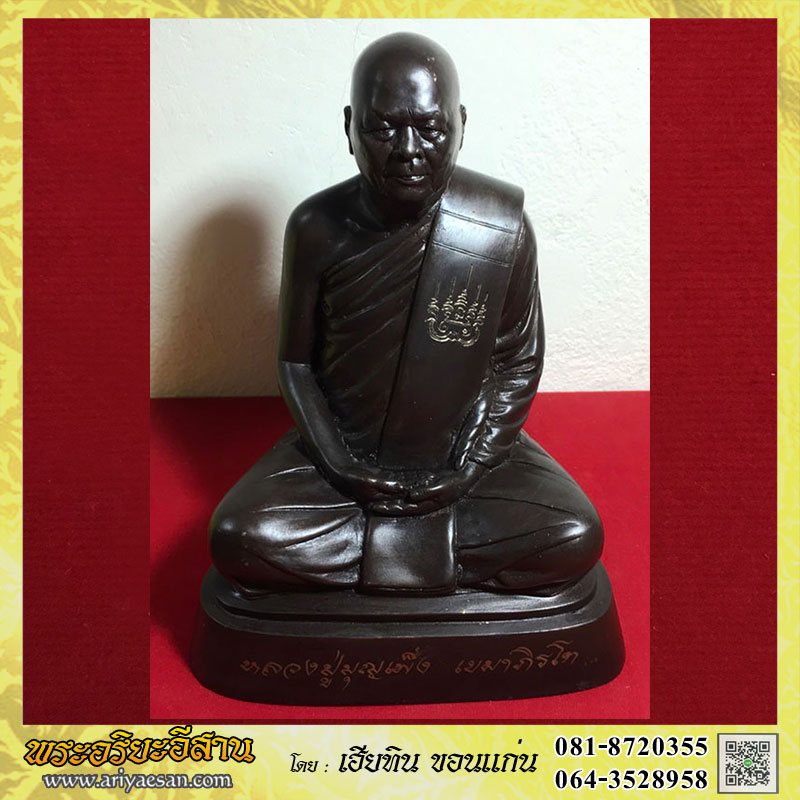พระบูชาขนาดฐาน5นิ้ว สูง7นิ้วหลวงปู่บุญเพ็ง เขมาภิรโตครบอายุ๗๗ปี เนื้อโลหะปี2549 วัดถ้ำกลองเพล อุดรธานี