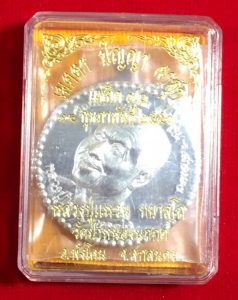 เหรียญเมตตา ปัญญา ผาสุกหลวงปู่แหวน ทยาลุโกรุ่นแซยิด๗๐ เนื้อเงินหมายเลข๑๙ปี2557 วัดป่าหนองนกกด อ.พังโคน สกลนคร น้ำหนักเนื้อเงินเหรัยญนี้17.21กรัม(เงินแท่ง1กรัม=80-100บาท) เหรียญนี้สวยมากๆเลขก็สวย พร้อมกล่อง