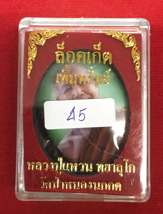 ล้อกเก้ตหลวงปู่แหวน หยาลุโก รุ่นเพิ่มทรัพย์ หมายเลข45 กรรมการ ฉากเขียว ปี2560 วัดป่าหนองนกกด จ.สกลนคร
