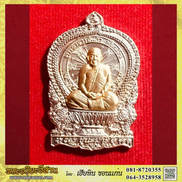 เหรียญนั่งพานหลวงปู่แก้ว สุจิณโณ รุ่นชนะมาร เนื้ออัลปาก้าหน้าทองฝาบาตร ปี2556หมายเลข323วัดถ้ำเจ้าผู้ข้า จ.สกลนคร